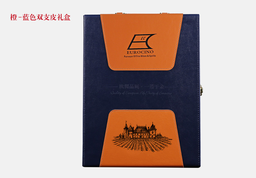 橙 - 藍色雙支皮禮盒
